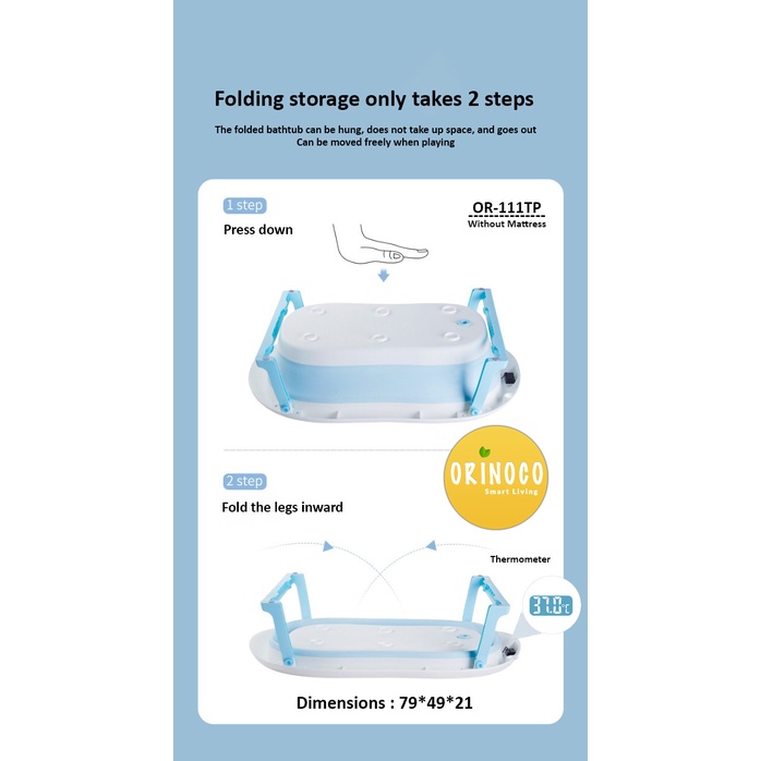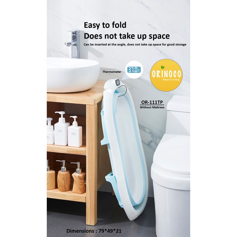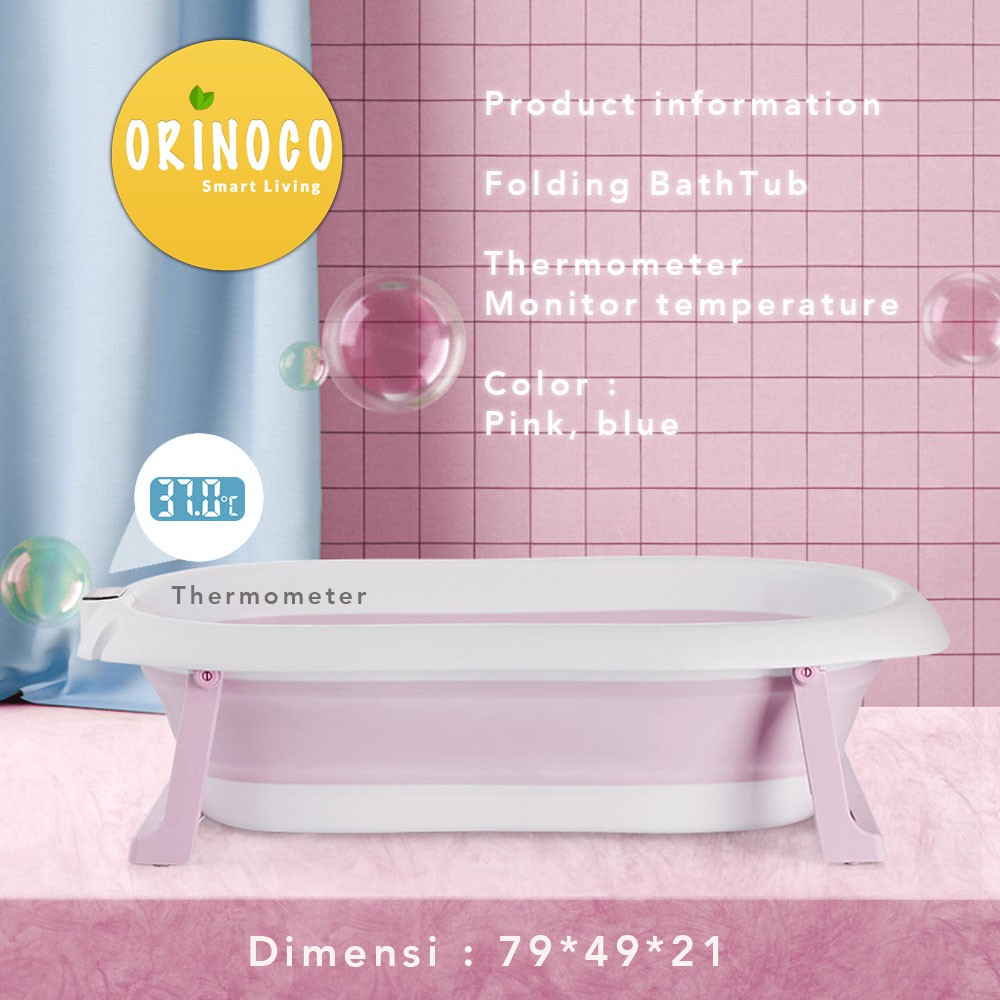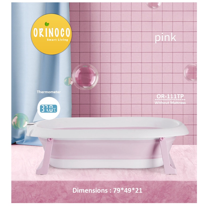Alasan kenapa harus beli Orinoco Bak Mandi Bayi Silikon Lipat include Termometer + Matras Anti Selip / 1 Set - Warna Pink sekarang
